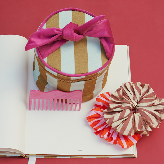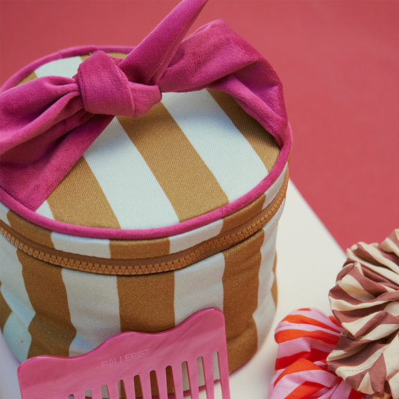 A clássica nécessaire Joana ganhou uma edição limitada criada especialmente para a collab Nuó + Gallerist — agora em uma versão listrada, reunindo tudo o que faz parte do nosso universo: charme, delicadeza e design feito para durar.